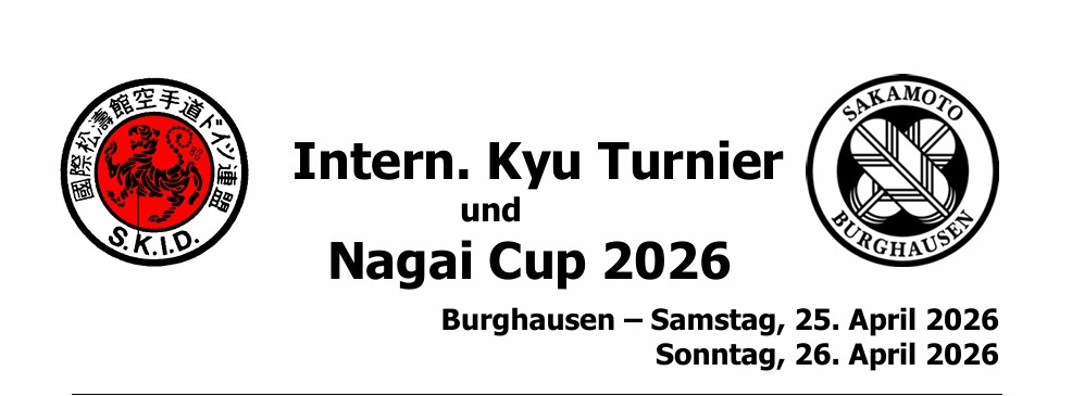 NAGAI CUP 202625/04/2026 - 26/04/2026 CONFERMATOData apertura iscrizioni : 28/01/2026 - Termine iscrizioni : Tipo di evento : Internazionale SHOTOKAN KARATE INTERNATIONAL DEUTSCHLAND84489 Burghaus