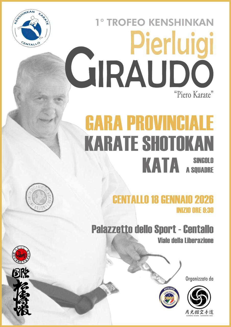1° TROFEO KENSHINKAN - Giraudo Pierluigi18/01/2026 CONFERMATOData apertura iscrizioni : 01/12/2025 - Termine iscrizioni : 31/12/2025 Tipo di evento : Provinciale Centallo, CN