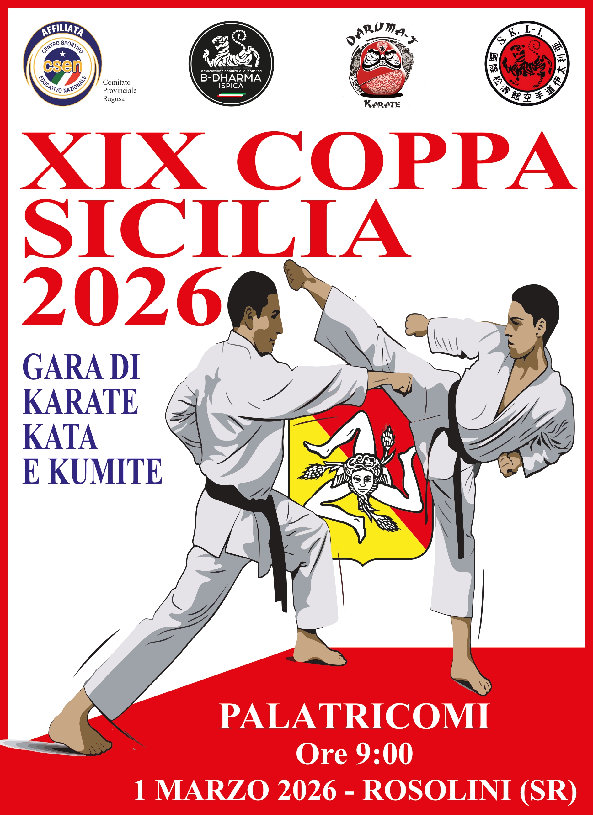 XIX COPPA SICILIA 202601/03/2026 CONFERMATOData apertura iscrizioni : 31/10/2025 - Termine iscrizioni : 22/02/2026 Tipo di evento : Nazionale kata e KumitèROSOLINI (SR)